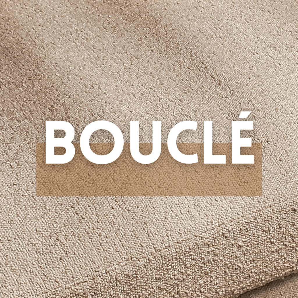Bouclé (boo-CLAY) is a French term meaning “curled” and refers to yarn made with a series of loops, or fabric that is made with the yarn. The loops of the yarn create a bumpy texture and appearance in the textile. Traditionally it’s made with wool but you can find it in other material, such as polyester, linen, silk, etc.